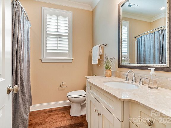 This exquisite Cornelius home in vibrant Robbins Park offers the best of Lake Norman living and fabulous amenities, all within walking distance to shops, parks, and boating. Nestled on a quiet, tree-lined street offering a peaceful setting, this impeccably maintained property boasts lush, manicured landscaping, charming Bermuda shutters, and private screened-in porch opening to a beautiful paver patio—perfect for outdoor entertaining. Inside, the home features a chef’s kitchen with large island, gas range, extensive cabinetry, and flex space ideal for a home office or scullery. Other main level features include a sunny dining room, living area with cozy fireplace, and guest suite adding convenience and flexibility. Upstairs, a spacious primary retreat and spa bath with separate vanities, soaking tub, glass shower, and dual walk-in closets with direct access to laundry room. Enjoy three additional bedrooms up plus an open loft/bonus area providing plenty of space for family and guests.