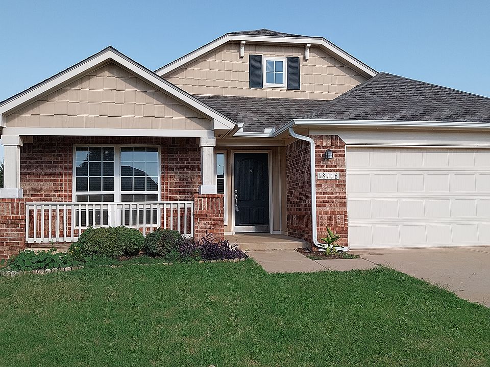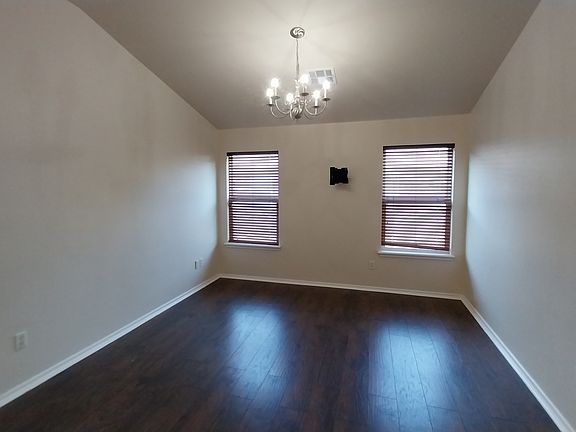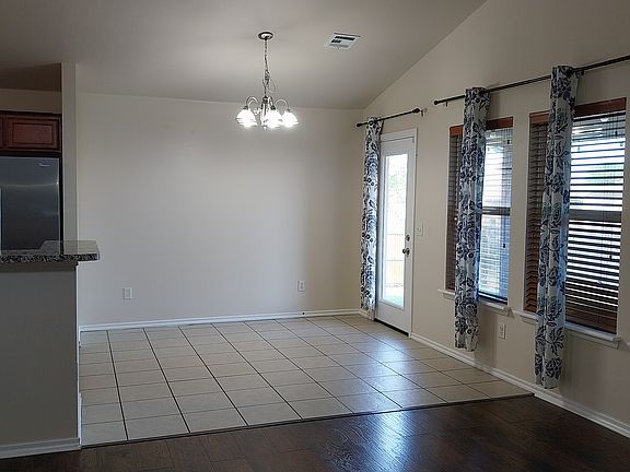 Beautiful 3-bedroom, 2-bathroom home located in the sought-after Valencia neighborhood FOR RENT. The flexible space off the entry can serve as a dedicated office for remote work, a quiet study, or an additional living area. The spacious main living room flows seamlessly into the kitchen, creating an ideal setting for both everyday living and entertaining guests. The Kitchen is a true highlight, featuring a central island, stainless steel appliances, a pantry for ample storage, and plenty of counter space. The oversized primary bedroom is a private retreat with a vaulted ceiling and an en-suite bathroom designed for relaxation. Whirlpool tub, a separate shower, double vanities, and a large walk-in closet. Enjoy the charming covered front porch or the covered back patio. The backyard is fully fenced, providing a safe and private space for children and pets to play. The Valencia community offers extensive walking trails, multiple parks and playgrounds, two splash pads, and fishing ponds.