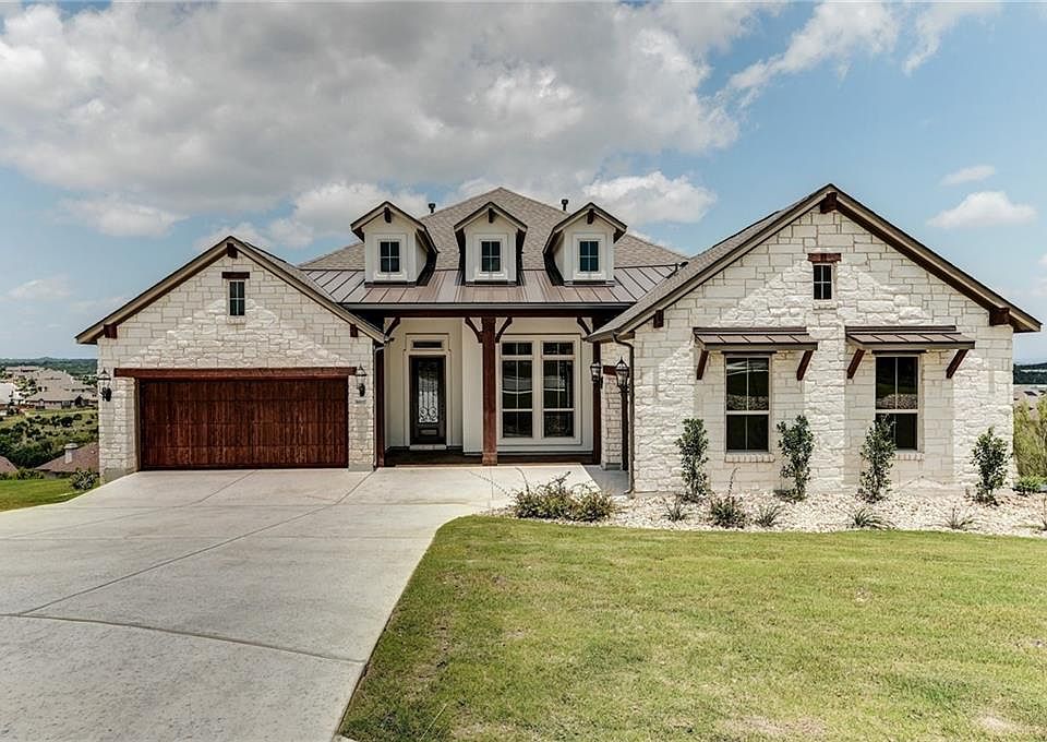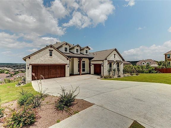 St. Martin plan unique 1.5 story open living with formal dining, study, 12' ceilings, large family room with masonry fireplace overlooking the large covered patio panoramic Hill Country VIEWS! Chef's kitchen includes large central island with breakfast bar, sunny breakfast room and corner pantry. Owners suite includes a spa bath with a frameless shower, garden tub and TWO walk in closets. Upstairs game room/4th bedroom option with full bath 2 walk in closets and large covered balcony. Designer touches throughout this lovely home.