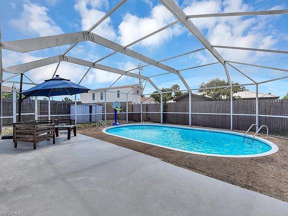 Step into your future home located in the quiet and relaxing neighborhood of San Carlos Park at Port San Carlos. This single-family house offers three bedrooms plus a den and two updated bathrooms, and is a concrete block home. The kitchen has recently been updated with countertops and white appliances that complement any decor style. Outside, you'll find a covered lanai overlooking a sparkling swimming pool – the ideal spot for family gatherings and lazy afternoons in the sun. The backyard is completely fenced and offers room to play, both for kids and pets. Attached to the home is a one-car garage providing ample storage space. The interior and exterior of the house have recently been painted. The lot has central water and sewer, so you won’t have to worry about septic and well maintenance. Located close to shopping, dining, the beach, and the airport, this home offers easy access to everything you need for a comfortable lifestyle. Don't miss out on this opportunity to make this your own piece of paradise in San Carlos Park. Schedule a showing today and start living the Florida lifestyle.