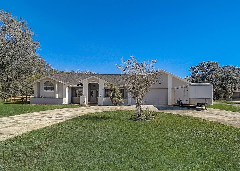 Welcome to your dream home in the heart of Spring Hill! This stunning 3-bedroom, 2-bathroom house is now available for sale. Nestled on a spacious 1-acre lot, this property offers a serene setting that will captivate you from the moment you arrive. As you enter through the leaded glass front entry doors, you'll be greeted by the stunning chandelier and the open layout of the formal living room and great room. The subway tile kitchen is a chef's delight, with its modern design and ample space for cooking up culinary masterpieces. You'll love how it seamlessly flows into the great room, allowing for easy entertaining. Add to this a brand new range and mircrowave in 2023. One of the highlights of this home is the screen-enclosed SPORT POOL with an in-floor cleaning system and volleyball net set in a large entertaining space. Imagine spending your summers lounging by the pool, hosting barbecues at the outdoor grill and wet bar, and enjoying the Florida sunshine. The pass-through from the kitchen to the pool area adds convenience and ensures that no one misses out on the fun. Inside, vaulted ceilings create an airy atmosphere throughout. The master bedroom overlooks the pool and features an ensuite bathroom with double vanity sinks, a large Jacuzzi tub, and a separate shower. With all-tile flooring throughout, maintenance is a breeze. Two more bedrooms on a split plan providing additional privacy, complete this classic. For added convenience, there's a large laundry room and a fenced area just off of the pool that can be used as enclosed dog run or garden space. In addition to the impressive pool area, this property boasts a circular driveway and a 3-car epoxy coated garage with a detached BRAND NEW MASSIVE 40 x 70 WORKSHOP ADDED IN 2023! The workshop is equipped with a sturdy 150mph wind rating, making it perfect for any hobby or storage needs. Bring your RV’s, boats, tractors, cars and all the tools-this space will hold it ALL! THIS IS A LIFE SIZED MAN CAVE- OR FOR THE SERIOUS HOME BASED BUSINESS NEEDING MORE SPACE. Roof was updated in 2016, and in 2023, brand new paint inside and out, new blinds, new tile in living room and bedrooms, and new smart garage door opener. Don't miss out on this incredible opportunity to own your own piece of paradise. Set on a peaceful country lane, yet just minutes to all shopping, dining and entertainment. Contact us today to schedule your private tour.