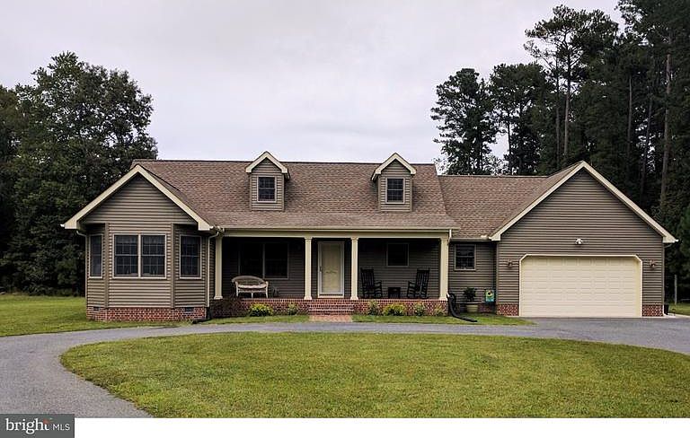 Custom built split floor plan rancher that is ready to move in. Welcoming front porch for those wooden rockers. Gathering room with brick corner fireplace and double door that lead to a large rear deck that overlooks a private back yard. Kitchen with custom oak cabinets, breakfast bar, appliances, and adjoining dining room. Owners suite with full private bath and walk in closet. Two nicely sized bedrooms and a full guest bath. Laundry room. Upper level unfinished bonus room that would be a great all purpose room. Two car attached garage. Circular driveway. Just a hair over two acres. Easy access to the ocean and resort areas. Close to the town of Georgetown.