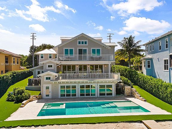 Welcome to your breathtaking Intracoastal Blue Water Estate built in 2021 with direct ocean access and no fixed bridges. Nestled along the shimmering blue waters of the Intracoastal Waterway, this beautiful fully furnished home features a rare sandy-bottom private beach which is ideal for swimming, paddleboarding, or simply lounging as boats drift by, and plenty of room for multiple water crafts. Designed for both entertaining and escape, the property includes, two separate guest retreats, each complete with its own kitchen, living room, bedroom, and full bath — perfect for hosting family or friends in comfort and privacy, plus boasts two spacious main-floor bedrooms, while the expansive primary suite offers a luxurious bedroom, a cozy sitting room with a wet bar