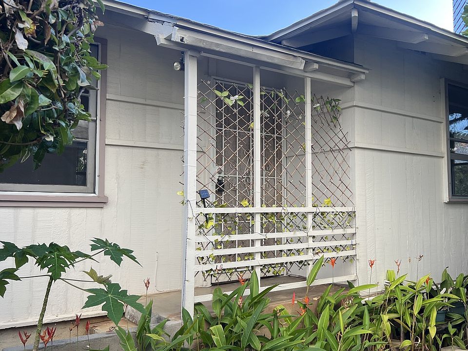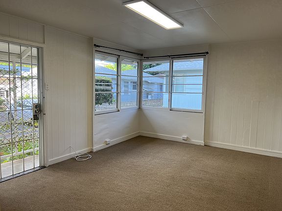 1811 A FERN STREET. McCully partially furnished 2-bedroom, 1-bathroom, 1, covered carport parking stall. In a single level house, located at 1811 Fern Street, directly across from Lunalilo Elementary School. Rent is $2,350.00 per month. There are 682 square feet of living space. The house has lots of natural light flowing through the house. There is carpet in the living room, with 2 large vintage sliding windows and 2 metal security screen doors in the living room and kitchen to keep the air in the house circulating. There is a large kitchen with a large porcelain sink with a pull-out faucet and refrigerator, gas stove and lots of cabinet space with life proof flooring. The bathroom has a 30" white vanity with a matching tri-mirror and updated accessories and light fixtures, with tile flooring. The bedrooms are carpeted with double-hung windows with closet space. There is a dedicated laundry area with a washer hook-up, a clothesline and a large utility sink, and a storage room that is adjacent to the carport.