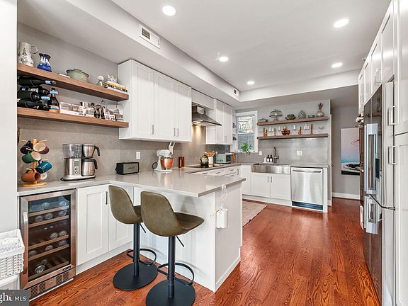 3 Bed / 3 Bath (2 Bed + DEN / 3 Bath) penthouse in an iconic round-bay Victorian boutique building in Bloomingdale, just half a block from the award-winning Red Hen and Big Bear Cafe. Combining historic charm with modern updates, this home offers an open, flexible layout perfect for living, entertaining, and working from home. With east-west exposures, the space enjoys abundant natural light throughout the day, year-round. The main level features soaring ceilings and a bright, renovated kitchen with white shaker cabinetry, gleaming quartz countertops, Fisher & Paykel stainless steel appliances, Bertazzoni double wall ovens, induction cooktop, touch-activated faucet, wine fridge, and a large breakfast bar island. The open living and dining areas showcase hardwood floors, recessed lighting, exposed brick, and an antique mantel with a decorative fireplace. Two sunny bedrooms (One bedroom plus a Den) provide flexible space for guests, a home office, or a home gym. Upstairs, the primary suite is a private retreat featuring a vaulted turret ceiling, remote-controlled dimmer lighting, built-in closets, a ductless mini-split, an ensuite bathroom, and direct access to a 32-foot private roof deck with sweeping views including the Capitol, Washington Monument, National Cathedral, summer fireworks, and stunning sunsets. A second balcony off the main-level bedroom provides additional outdoor space with west-facing views. Additional highlights: Two tandem parking spaces behind the building; In unit washer and dryer; Built-ins throughout; Balcony and furnished rooftop deck ideal for outdoor entertaining ; Custom pottery barn shades ; Multi-head Vigo shower Enjoy Bloomingdale's restaurants, bars, farmers market, parks, and easy access to public transit. Whole Foods is 1 mile away, and Trader Joe's and Union Market are less than a mile. This home pairs the elegance of a historic Victorian exterior with fresh, modern interiors, creating a unique living experience in one of DC's most vibrant neighborhoods.