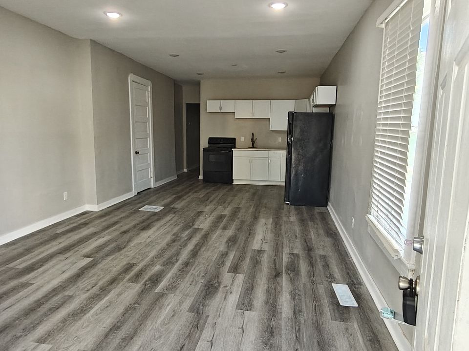 Backyard and porch. First floor unit with large open concept living room and kitchen, bedroom, 1 bathroom, and extra room in the back of the unit.