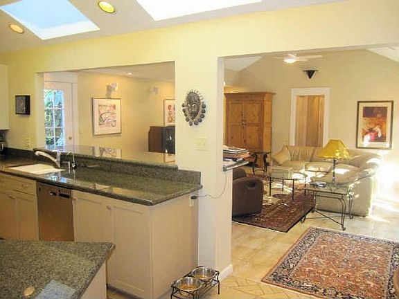 Very pretty house. Great updated kitchen open to den with vaulted ceilings. Nice formals with high ceilings. Large master & guest bedroom up. Guest bed/bath plus office downstairs. Sunroom down. 4th bed/bath & extra office/playroom at rear of house with separate staircase. Wonderful size yard. Room for pool & nice front yard with wrought-iron fence.