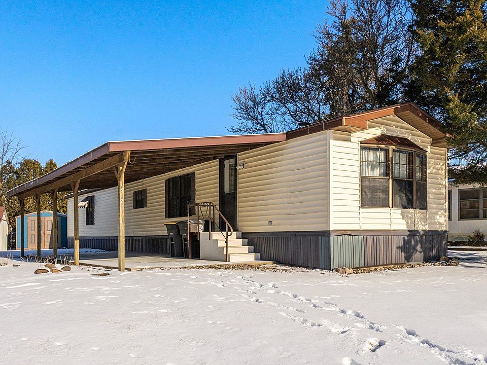 Come see this affordable home in NW Fort Wayne, located within minutes of everything you need off Lima Road. 2 bedrooms and 2 FULL baths! Covered deck, firepit and shed (with electricity!) will allow you to enjoy outdoor hobbies. Carport to keep your vehicle protected from the elements and there are paved and gravel spaces for more parking if needed. Home has CENTRAL AIR and has been well maintained. All appliances remain with the home, including the washer & dryer. No HOA, Mobile Home Park Association, or lot rent. You own the land! Located on a quiet, no-outlet street, just move in and start making it feel like yours!