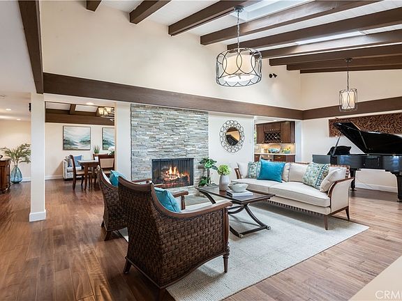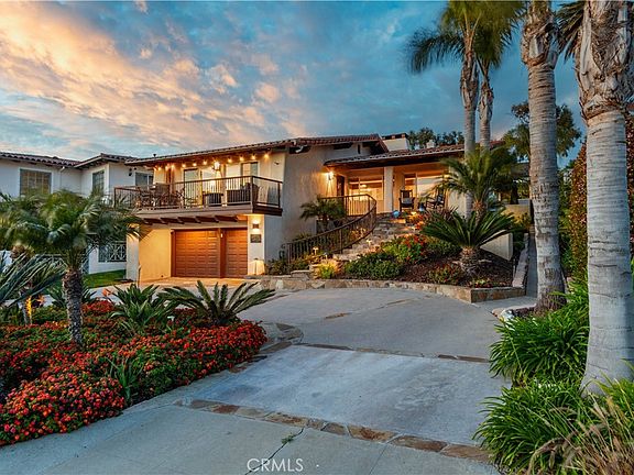 Noted architects Young and Remington* designed this radiant contemporary home with mid century modern influences and a nod to California's Spanish past. It has crisp, clean lines, lots of light, an openness that belies its size, an effortless efficient flow and is family functional. It's as timeless today as it was advanced when built. Ample windows open the interior to the Pacific, Catalina Island and beyond. Its aesthetic compatibility helps define an affluent, but relaxed and casual lifestyle. All the family's needs are met on the main level. The sophisticated kitchen and center island anchor the living, dining and family areas. The living room is striking with vaulted ceilings, ocean views and dazzling stacked quartz stone fireplace. The dining and family areas also have vaulted ceilings and readily access the backyard. The spacious primary bedroom has a private viewing deck, en suite bath with Jacuzzi tub and walk in shower, vaulted ceiling and deep, wall to wall closets. A seamless flow from inside to outside integrates the amenities and lifestyles of both. Professional landscaping surrounds the entertainment areas and the focal point fire pit setting the ambiance for alfresco dining or just relaxing in the HotSpring saltwater spa. It's a perfect area for entertaining and family enjoyment. So perfect that it's been chosen for a wedding and a celebration of life memorial. One level down from the main is a huge fourth bedroom or office with excellent natural light and a full closet. Adjacent is the laundry room with soaking sink and six foot folding area. The double car garage with builtin work area is also accessable on this level. This home has splendid curb appeal accented by its extraordinary design and lush landscaping. The majestic stone spiral stairway and circular drive add a pleasing geometric visual. Only two blocks from the cliffs and close to local shops, gourmet market, restaurants and across the street from PVHS, it is nicely situated for convenience and recreation activities. Recent upgrades include a 3 ton 2 zone HVAC, a tankless water heater and camera/security system. *This acclaimed architectural firm had many notable projects including these local examples: DeLeeuw Residence, 1000 Via Romero, Towle Bldg. in Malaga Cove Plaza and El Cholo Restaurant in L.A.