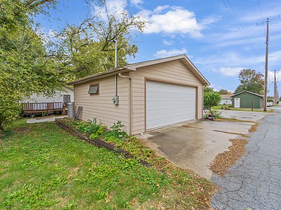 Welcome to this charming 2-bedroom, 1-bath ranch-style home nestled on a 6,860 sq ft lot in the heart of Perry. Offering 1,152 sq ft of well-maintained living space, this home boasts updated appliances, a newer roof, and maintenance-free vinyl siding for effortless upkeep. The spacious eat-in kitchen features rich wood cabinetry, modern black and stainless steel appliances, and ample counter space. Natural light pours into the living and dining areas, enhanced by arched doorways and warm wood trim. Both bedrooms are generously sized, and the entire home is move-in ready with neutral tones throughout. Step outside to enjoy a large wood deck under mature trees—perfect for entertaining or relaxing. A highlight of the property is the oversized detached garage, offering abundant space for storage or hobbies. Whether you're a first-time homebuyer, downsizer, or investor, this turnkey home delivers comfort and convenience in an established neighborhood.