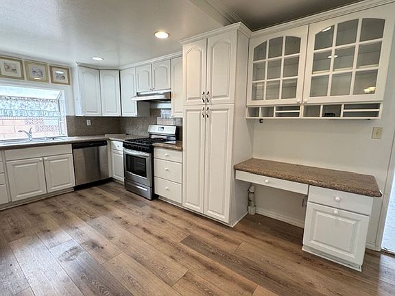 Charming one-story home on quiet street in the heart of Simi Valley. This 3 bedroom, 2 bath home features a large, remodeled kitchen with plenty of storage space, new vinyl plank flooring, new paint, and a master bedroom with walk-in closet. The spacious family room opens to the kitchen and looks out on a large patio, and backyard with lemon and orange tree (gardener included). The home also includes a 2-car garage, central AC, refrigerator, and washer/dryer.