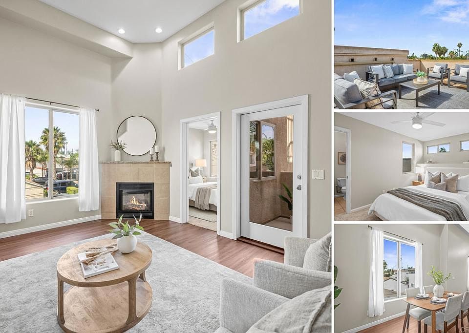 Just blocks from all the vibrant amenities Pacific Beach has to offer, this 3-bedroom, 2.5-bath condo is the ultimate beachside retreat. Perfectly positioned as a corner unit, you’re only steps from Garnet Ave, a few blocks to Mission Bay, and about a mile from the beach, shops, and restaurants. Enter through your private entryway to find a convenient downstairs bedroom with a full bath, plus a stacked washer and dryer in the hallway. The main level offers an open layout with a kitchen, dining area, powder bath, living room, and an additional bedroom that can also serve as a home office. The main living area offers an open layout with lots of windows and the patio door which is perfect to take in those coastal breezes. Going upstairs, the private primary suite features a full bathroom. Heading back downstairs off the living room, the private patio leads to a spacious rooftop deck—ideal for sunsets, fireworks, or entertaining guests. Adding to its appeal, this home comes with an attached one-car garage plus a dedicated parking space right next to the entrance. With only four units in the well-maintained HOA, this property combines comfort, convenience, and the best of beach living.