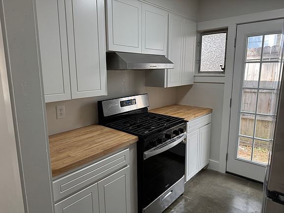 This unit was renovated and updated just a few years ago and contains two bedrooms, one bathroom, a kitchen with butcher block countertops, and a spacious living room. Each bedroom has a closet.