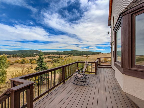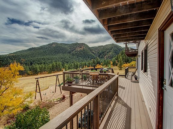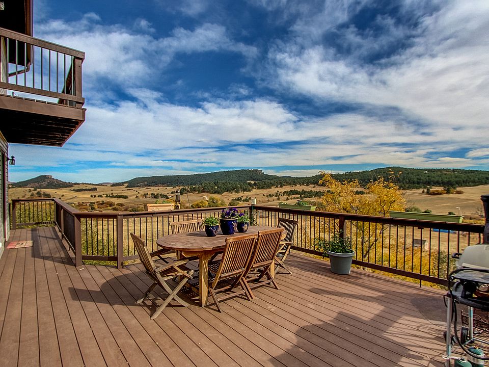 Beautiful Home on 2.7 acres in the Woodmoor Mountain community. Woodmoor is a gated community On Hwy 105 just North of Palmer Lake in Southern Douglas County. This home features Spectacular views with expansive decks to take in the views with Vaulted Ceilings. The Large Kitchen opens to the family room that has a cozy wood burning stove and features Granite counters, Custom cabinets, upgraded appliances, recently refinished Hardwood Floors. Off of the Kitchen is a Huge formal dining room, Large walk-in pantry and Laundry room. Main floor also has Office with built in Bookshelves and a very nice sized bedroom and bathroom. Upstairs features the Huge master suite, massive loft area, 2 secondary bedrooms with ladder access to super cool loft/play area. Walkout Basement has a bedroom, bathroom and 1000 sq. ft. of unfinished space for future improvements. Large 4 car tandem garage with lots of extra room and 1500 sq ft of storage area above garage. Bring your Horses!