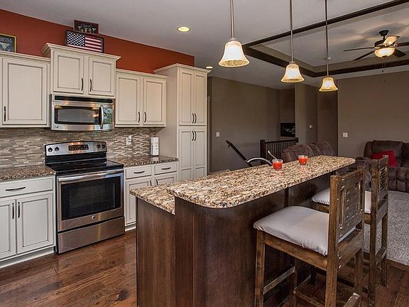 Spacious Ranch plan with 1,538 sq.ft. on the main, 1,100 finished in the LL, 4 bedrooms, 3 full bathrooms and 3.5 car attached garage. The exterior offers stucco to stone detailing, maintenance free vinyl siding and front porch area. Unique plan with 2 bedrooms, full bath and laundry room/mudroom at the front of the home and opens up to reveal the spacious family room with fireplace. The modern open kitchen boasts granite counter tops, tiled backsplash, stainless steel appliances and center island overlooking the dining area, sliding door to the deck, and family room, featuring a floor ...to ceiling stone fireplace and tray ceiling.Large master suite with master bath featuring granite double vanity, tiled shower and walk-in closet with access to the laundry room. Finished lower level provides an additional family room with wet bar, 4th bedroom, full bath and plenty of storage space. NE Ankeny located in Deer Creek Estates, minutes from the interstate!