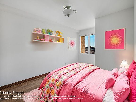 • Two balconies: front-facing off the living room, rear-facing off the primary bedroom