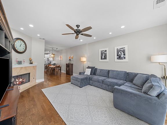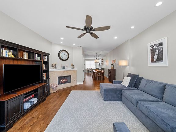 This beautifully and fully renovated 3-bedroom, 2.5-bath townhome in Dearborn Village blends modern design with everyday convenience, making it the perfect home for your growing family. Nestled in a gated community with lush, professionally landscaped courtyards, this home offers a peaceful retreat while keeping you close to everything the South Loop has to offer. As you approach, you're welcomed by a spacious private patio, ideal for summer BBQs, morning coffee, or hosting friends. Step inside to a huge open-concept living and dining area, where warm hardwood floors, a sleek, freshly tiled gas fireplace, and ample space for your furniture create an inviting atmosphere. A brand-new powder room on this level adds extra functionality-perfect for guests or everyday convenience and is a hallmark of modern lifestyle. At the heart of the main floor is a stunning chef's inspired kitchen featuring modern white shaker cabinetry, quartz countertops, a glass tile backsplash, stainless steel appliances, a removable island, and matte black hardware- a dream space for cooking, entertaining, and making memories! Upstairs, you'll find two oversized bedrooms and two fully updated bathrooms. The primary suite is a serene retreat, offering three closets and plenty of room for a king-sized bed, nightstands, dressers, a home office, or even a cozy reading nook. The spa-like en-suite bath features a double vanity with quartz countertops, built-in storage, new fixtures, and a massive walk-in shower with custom glass insert. Down the hall, the second bedroom is perfect for kids or guests, and the fully renovated guest bathroom is just as stylish and functional. Head up to the top floor, where a spacious and versatile third bedroom awaits- could also be ideal as a family room, home office, playroom, gym, or flex space to suit your needs. This level also features a newly created, oversized laundry room with side-by-side washer/dryer and extra storage. The floor was extended over the stairs to add an additional closet and new sliding doors lead out to the recently built private rooftop deck, where you can soak in breathtaking city views and enjoy your own urban oasis. Other noteworthy updates include a new high-efficiency furnace, AC condenser, roof, humidifier, water heater, LED light fixtures, fresh paint, new carpet in the bedrooms, new tile in the bathrooms, and new hardwood flooring throughout. One attached garage parking space plus an additional outdoor spot are both included! Located in a quiet, gated courtyard community, you're just steps from Mariano's, Lakefront trails, Lake Michigan, CTA & Metra, all major highways and some of the best local coffee shops and restaurants in the South Loop. Don't miss your chance to make this stylish and spacious townhome your own!
