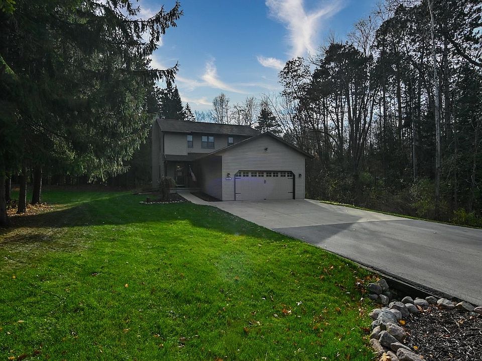 Fantastic location for this 3 bedroom, 2.5-bath house in Suamico! Located on a cul-de-sac, this home offers privacy with its trees and then offers convenient access to Vickery Village and the HWY. You will find beautiful hardwood floors throughout the main level. There is a wonderful sun room off the living room. The kitchen comes with all the appliances and has a separate dining area. All 3 bedrooms are upstairs, including the primary suite with en-suite and spacious closet. The lower level with egress windows offers additional finished space with a family/rec room. Outside you'll find a stamped concrete patio with built-in fire pit and a storage shed. Great home in the Howard-Suamico school district!