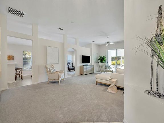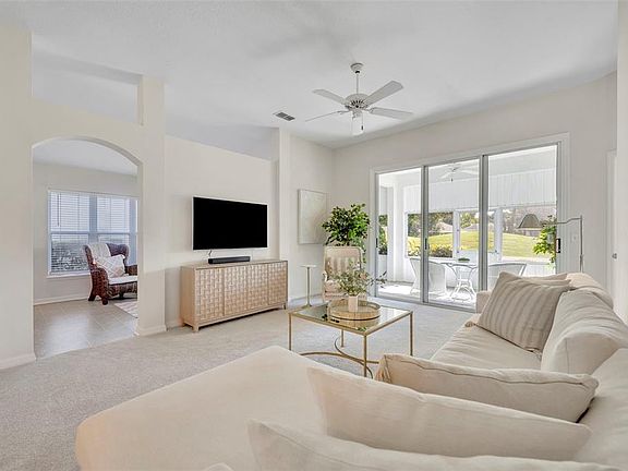 HOME IS PRICED TO SELL and all furniture along with the appliances stay with the home. TURNKEY charming 2-bedroom, 2-bathroom home nestled in The Country Club of Mt Dora, right on the 7th green. As you step inside, you’ll be greeted by a professionally decorated home with a spacious living room with vaulted ceilings, a large dining area with office space and a bright kitchen with updated white cabinets- and all stainless steel appliances ( brand new microwave) included- great for entertaining. Brand new carpet throughout 2025. Freshly painted entire house 2025 . Laundry room updated new laundry tub and faucets 2025 and washer and dryer included. The master suite is a true retreat, featuring a walk-in closet and a bathroom with updated new cabinet doors with dual vanities, a soaking tub, and a large separate shower. Step outside to the expansive lanai (with all new upgraded screens) and take in the stunning views of the golf course - a lovely setting for your morning coffee or evening relaxation. Can be a 4 season room. All cabinets updated with new doors throughout 2025 . A two-car garage adds to the convenience. Painted 2025 HVAC all new 2019. Brand new screens on every window and lanai 2025. Enjoy an active lifestyle with access to the 18-hole golf course, tennis and pickleball courts, a pool with hot tub, clubhouse, restaurant, and pro shop, all within the community. Ideally situated just minutes from the 429-toll road and new Wekiva Parkway, you’ll have quick and easy access to Orlando, 35 minutes to Sanford airport and 45 minutes to MCO airport, theme parks, and Florida’s beautiful beaches. This home is in a prime location - schedule your showing today!