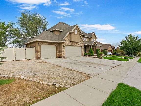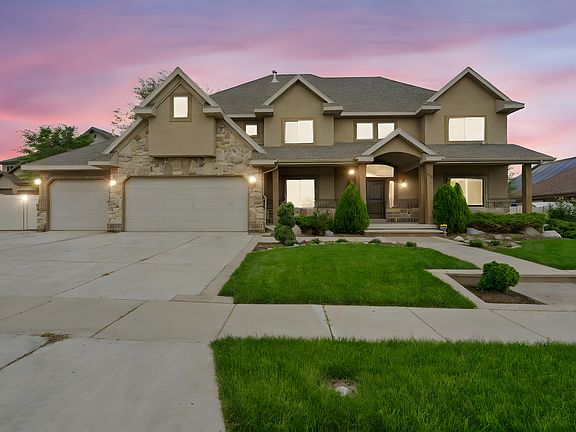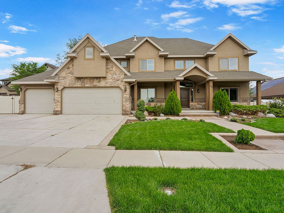 No backdoor neighbor and no HOA. Million-dollar living for under a million dollars. This Bluffdale beauty offers grand design, modern comfort, and income potential-all on a spacious lot with fresh landscaping that feels open and inviting. Step inside to a dramatic entry with soaring ceilings, a sweeping staircase, and lattice wood-and-tile flooring. 5BR/4BA span over 5,500 sq. ft, highlighted by a luxurious primary suite with a private deck, spacious bathroom, and walk-in closet. Additional bedrooms include a junior suite with its own bath, two Jack-and-Jill bedrooms, and a main-floor guest room with adjacent bathroom. The open great room flows seamlessly to the kitchen, with a bonus room opening to a second deck. The daylight walk-out basement is already insulated and framed for a full ADU with kitchen, family room, 2 bedrooms, bathroom, and separate storage and cold storage rooms. A large yard with secondary water, RV parking, an ADU-ready basement, and no back neighbor make this an exceptional Bluffdale find. With interest rates trending down, now is the time to get ahead of the rush-this home checks all the boxes for space, design, and value.. Square footage figures are provided as a courtesy estimate only. Buyer/Broker is advised to verify all.