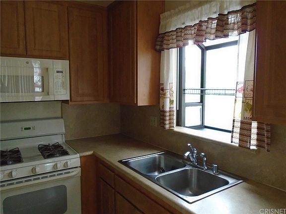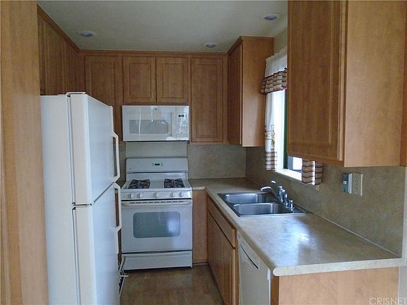 Nicely upgraded upper end unit, no neighbors on one side or rear. Remodeled kitchen, laminate floors, side by side washer and dryer in closet in bathroom. Dining area off kitchen, large living room with plant shelves. Shows very nice and EZ to find. 2-car tandem garage with opener. Washer, dryer and fridge included without warranty., Very bright home. A pleasure to show.