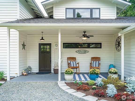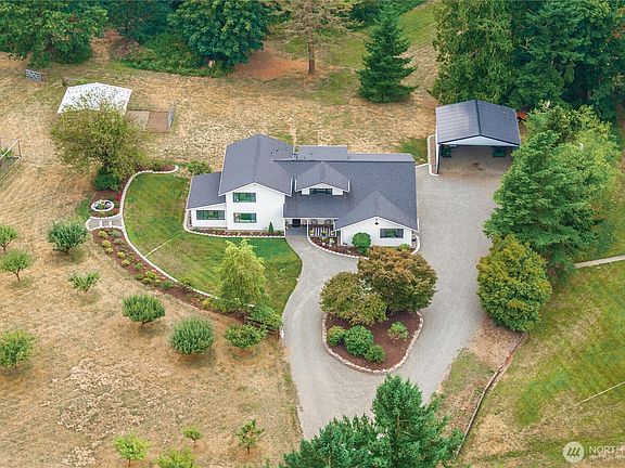 Beautiful Enumclaw Farmhouse w/Stunning Rainier views! Set on a shy 3acres backing to 40acres of private green space, this property offers rare privacy, charm & breathtaking views. Enjoy a bright, open floor plan w/Big picture windows & modern updates throughout. Stunning gourmet kitchen w/Custom cabinetry, granite countertops, induction range & large breakfast-bar island. Primary suite w/Gorgeous ¾ bath. Oversized 912sqft garage, 384sqft shop & 30x30 RV carport provide room for all your projects & toys. Beautifully landscaped w/Fruit trees, raised garden beds, chicken coop w/Space for horses & other hobbies. Designed for effortless entertaining w/Great indoor/outdoor areas. Ductless heating/cooling. Newer 30yr roof & more. Must see!