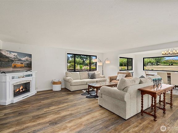 Fruit treesStunning rainier viewsModern updatesGourmet kitchenChicken coopLarge breakfast-bar islandPrimary suite