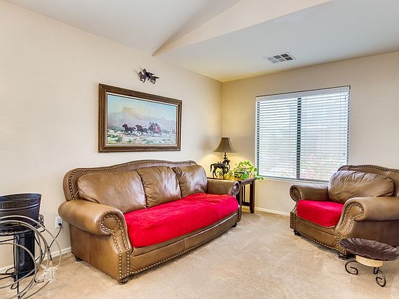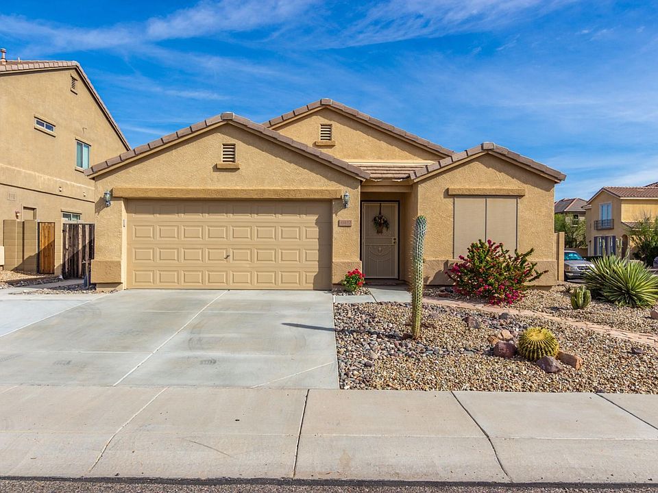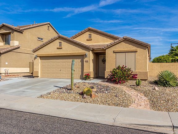 This home was designed with you in mind! It is nestled in the amazing city of Waddell! Upon entering this home, you are greeted with gorgeous hardwood flooring, soaring vaulted ceilings, an open floor concept and tons of natural light throughout! The island kitchen boasts tiled countertops, dual sinks, plant shelving, warm wood cabinetry and SS appliances. The spacious bedrooms offer plenty of room for sleep, study and storage. The master bathroom showcases dual sinks, walkin shower, private toilet room and walkin closet! The covered back patio overlooks the private, expansive backyard that overlooks lush green grass and mature citrus trees-an ideal setting for relaxing after a long day! Look no further! This home is sure to please!
