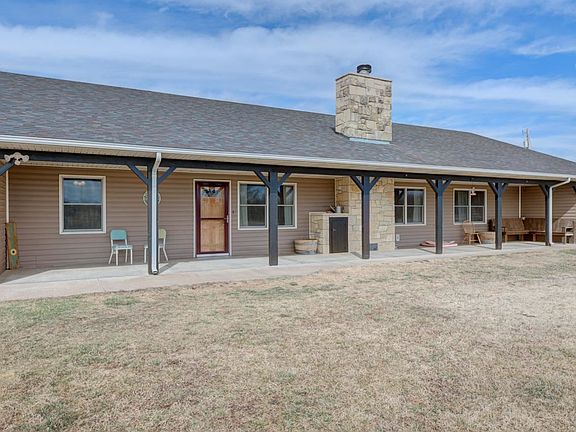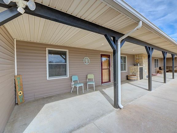 Custom built home on 12.35 acres with a pond! This home sits at the end of a private drive with views of the private pond from the comfort of the living room. Walk in the front door and be greeted by an open concept living/dining/kitchen space. Notice the large fireplace in the living room, not only is the fireplace beautiful, but it also has been ducted throughout the entire house (including the garage) to keep the home warm on those cold Kansas days and nights. The garage is also heated and cooled via the HVAC. Main bedroom boasts of a large walk in closet along with a spacious freshly updated bathroom. The home offers two additional rooms that could be used as bedrooms/office space/man cave/she space/storage or anything else you could dream of. The home has a large concrete safe room that can be used as additional storage and provides extra security. The property has two separate fenced pasture areas for cows/horses and even goats. There are fruit trees on the property that produce an abundant supply of apples and pears. The pond has been stocked with Bass perch catfish minnows and grasscarp. A trail cam has been put up in the creek to capture the images of the wildlife that travel through, including: deer, racoon, coyotes and even a bobcat! All major components have been replaced within the past 3 years. Roof is 3 years old, water heater is 2 years old, HVAC is 1 year old. The property also is set up to park an RV; electric, water and sewer is available. To many amazing features about this property to list, come see it for yourself! Seller is a licensed real-estate agent in the state of Kansas.