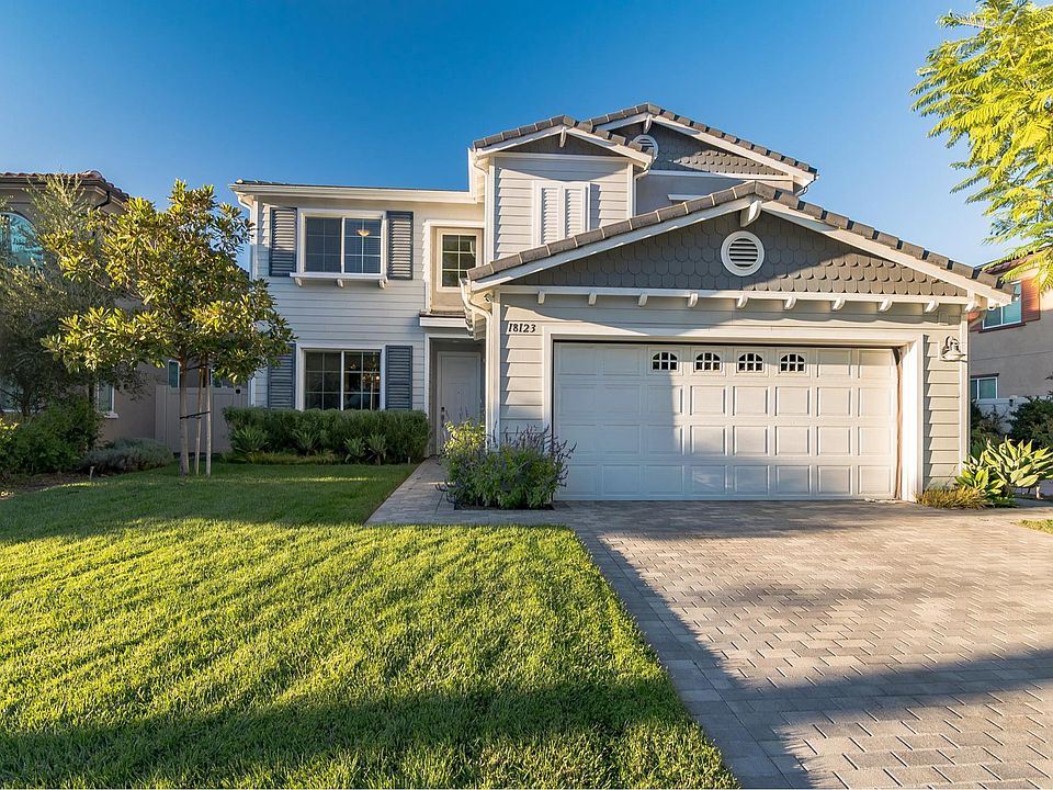 Check out this beautifully appointed turn-key home, built new in 2017. On the first floor is a rare downstairs bedroom and bath, living room, dining room and family room with gas fireplace. There is also first floor laundry. On the second level, a spacious primary suite with spa-like bath, plus three additional bedrooms and two baths make this perfect for any growing family. This home also features marble counter tops, walk-in closets, upgraded engineered wood, tile and carpet flooring through-out. The built in Smart Home Technology controls the front door camera, front door lock, garage door, some lights and the thermostat, remotely from your iPhone or Android device. Also included are energy efficient/energy star appliances, "cool roof" rated roof tiles, solar power system, LED light fixtures, LED recessed lighting, tankless high efficiency water heaters, and a high efficiency heating and cooling system. The large spacious lot is beautifully landscaped, fully irrigated, front and back and includes your own private in-ground pool and spa to complete the indoor/outdoor resort experience.
