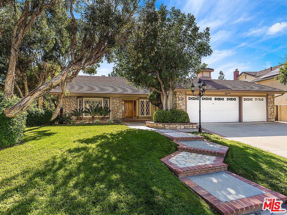 Charming ranch-style view home sited on a desirable cul de sac.This warm and inviting single story home includes 4 bedrooms, 2 ½ baths on an approx 15,000 sq ft lot with picturesque mountain views. Spacious Great Room features high beamed ceilings, oversized picture windows, and sunken seating area with brick fireplace. Updated Cook's kitchen offers brick accents and sunny breakfast nook open to the adjacent family room with entertainer's bar. Spacious master bedroom includes warming fireplace and French doors to backyard. Secondary bedrooms and office include custom built-ins and large windows to provide plenty of natural light. Covered patio and grassy pool size yard overlooks gorgeous mountain and valley views. Attached 3 car garage with converted room for extra storage or perfect for a personal workshop. 4th bedroom converted to office with built-ins. Award winning schools. This idyllic home is a must see!