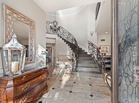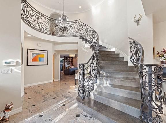 Welcome to Northridge View Estates, a distinguished Northridge community w/ award winning schools. Architecturally stunning w/ great lines & exquisite features. At nearly 4,600 sq ft on a 18,500 sq ft lot, 5 bedrooms, 5 baths, Home Theatre & Scrumptious Chef's kitchen & downstairs bedroom w/ private bath. Elegant & Sophisticated! Unobstructed views of city lights & majestic mountains. Vaulted ceilings, dramatic grand staircase entry, custom wrought iron railing & Limestone stairs. Entire home could be a featured showcase home. Exceptionally open floor plan,3 fireplaces, French doors in formal dining room & family room. Chefs kitchen, White Granite, Wolf 48" gas range, Sub Zero refrigerator & freezer. Walls of French doors in the kitchen and Family Room with custom built ins,French wood tiles throughout out.Professionally decorated & designed,no expense spared! The Home Theatre is perfect for entertaining & viewing your favorite films.3 rows of leather recliners, velvet curtains, fabric walls. Master bedroom retreat w/ soaring ceilings & balcony is a masterpiece in itself. Beautiful fireplace, large bathroom, custom lighting, walk-in closet. Luxurious large Trivento free standing tub. (overlooking the city lights) The walk in shower, custom cabinets & Swarovski crystal chandelier top it off! Enjoy views from Sitting room off master, this private estate truly has it all. Resort style backyard, large private pergola, gas firepit, pool/spa & fountain, outdoor kitchen area BBQ.