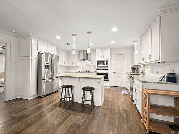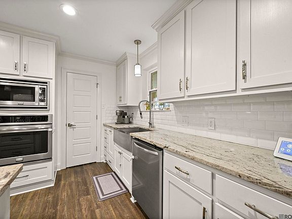 Updated Acadian 3 bedroom, 2 bath home! Central School School District and Flood Zone X. The kitchen and dining areas are great for entertaining and flow into the large fenced backyard. The kitchen has granite countertops, large island with space for barstools, stainless appliances, walk-in pantry, and a pot filler. Gas logs in the fireplace will keep you warm on these cooler winter nights. The primary bedroom and bathroom are updated and the walk in closet is a must see - Shelving and hanging space galore along with another walk in closet. The primary closet connects to the laundry room which has hanging space, cabinets, and a built-in ironing board. Separate shower, soaking tub, water closet, double vanities in the primary bathroom. The two additional bedrooms are spacious and each have a walk in closet. Updated hall bath with double sinks and tile surround tub. No carpet! Lots of storage and a great floorplan!