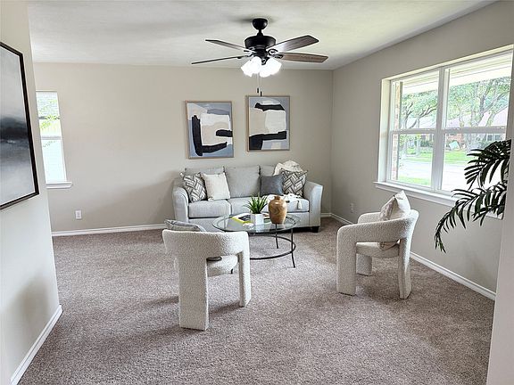 Beautifully Updated! ** NEW PVC PLUMBING, ROOF, & WINDOWS! New paint & flooring inside along with 2 living areas & a flex space that would make a nice office area. The eat-in kitchen has new *Quartz Ctops, Stainless appliances, backsplash & LED lighting. Main liv area, off kitchen, has access to large backyard & covered patio. Primary Bedroom has New Carpet, Cfan, Walk-In closet & the ALL-NEW Primary Bath has New Walk-in shower, new vanity w Marble ctops, flooring & lighting. Two other nice sized bedrooms, with new carpet & cfans, share access to the updated Hall Bath, with Quartz Ctops, flooring, lighting, mirror, switches & plugs. Hvac-2019, Water Heater-2020. Private backyard with no alley! Foundation repaired & comes with Transferable Warranty - Paperwork in Transaction docs. DISCLOSURES IN TRANS DOCS. Seller has NO SURVEY.