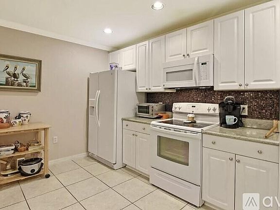 AVAILABLE 11/30/2024 for 6 or 12 month lease. Monthly rent includes lawn maintenance, water, trash, cable, and internet. Also available unfurnished. Inquire within. Beautiful, cozy, FULLY FURNISHED 2-bedroom, 2-bathroom condo with a 1-car garage, near the beaches in Fort Pierce! Only about 10 minutes from downtown, where you'll find lots of shops and great restaurants. Enjoy your coffee on the screened front porch, or the screened back porch, and the community pool just steps away. Amenities include: 1 car garage, central air and heat, dishwasher, laminate floors, pool, granite counters in the kitchen, updated bathroom, washer/dryer, screened front and back patio, accordion hurricane shutters, and FULLY FURNISHED. Just bring your toothbrush and move right in! Utilities included: lawn maintenance, cable, internet, trash, and water. Must be approved by the HOA. Each adult resident must also agree to, and submit, an additional application to the landlord for a background and credit check at a fee of $55 per adult conducted by a third party (Avail dot co). NON-SMOKING UNIT *$2299/month F/L and $2,199.00 security deposit required. 650 minimum credit score required. Maximum of 4 people (including children) allowed per unit by HOA. **DISCLOSURE: Unit is available for group showings - BY APPOINTMENT ONLY.** Utilities included in monthly rent: lawn maintenance, cable, internet, trash, and water.