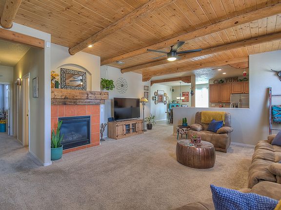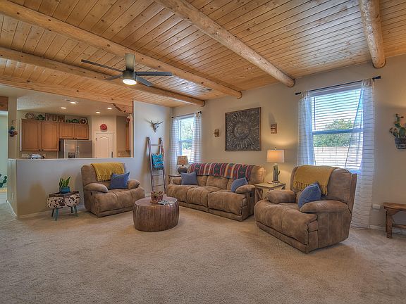 Welcome to this beautiful single story 4 bedroom home on a nice corner lot in Cabezon with tremendous pride of ownership. This home features a large open living room with large vigas and tongue & groove ceilings. The kitchen is spacious and features newer stainless steel appliances, as well as an new faucet. Master bedroom is a nice size and you'll love the master bathroom and walk-in closet, and modern barn door! Other updates include newer paint, new blinds, new hardware, fans, and newer faucets and toilets. Refrigerated AC for those hot summer days, and a cozy gas fireplace for the chilly winter nights. Xeriscaped yards for low maintenance landscaping. Come see this move in ready home today.