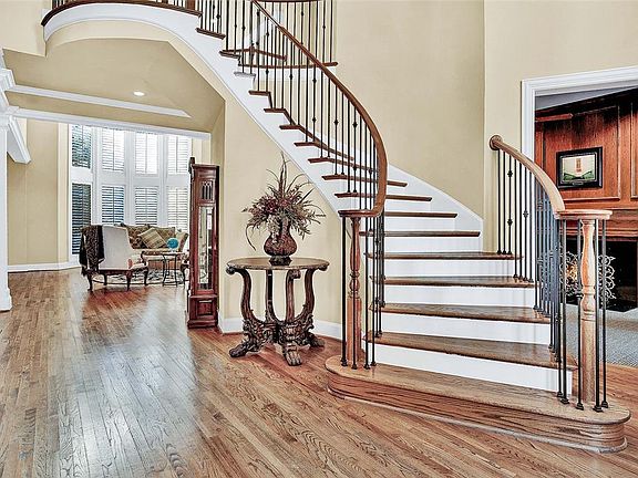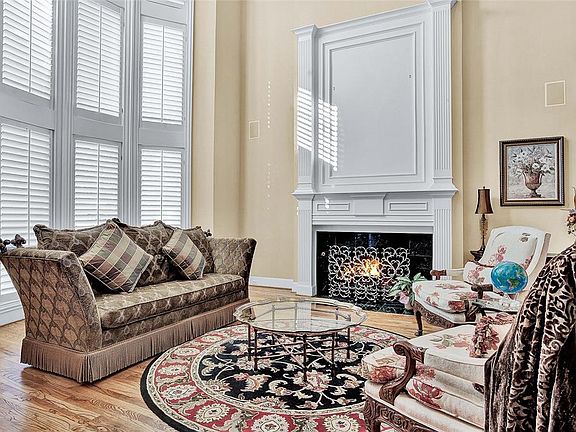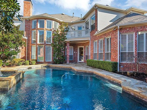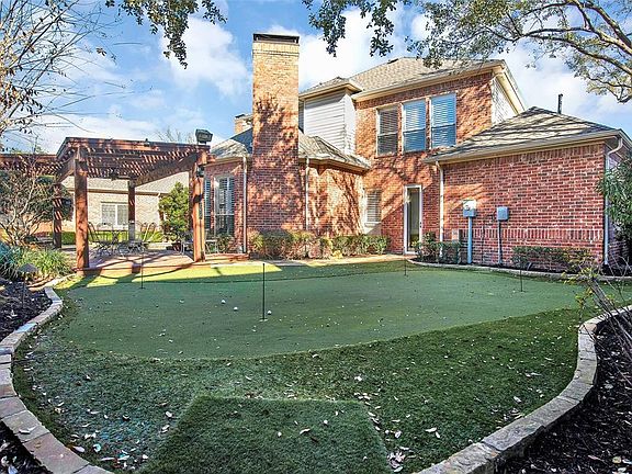 Striking home on corner lot exemplifies elegance: Plantation shutters, wood floors throughout, lots of natural light. Impressive 2 story porte-cochere captivates your guests as they drive up. Gourmet kitchen is a chef's delight with SubZero refrigerator and KitchenAid appliances: 5 burner gas cooktop, double ovens, walk-in pantry and flanked by wet bar, breakfast area and cozy family room. Back stairs lead to game room and media room, plus a storage closet and 3 bedrooms with 3 private baths. Paneled study also has a fireplace, and leads to master suite with spa-like bath! Relax in the backyard with sparkling pool, covered deck with built-in grill and your own putting green!