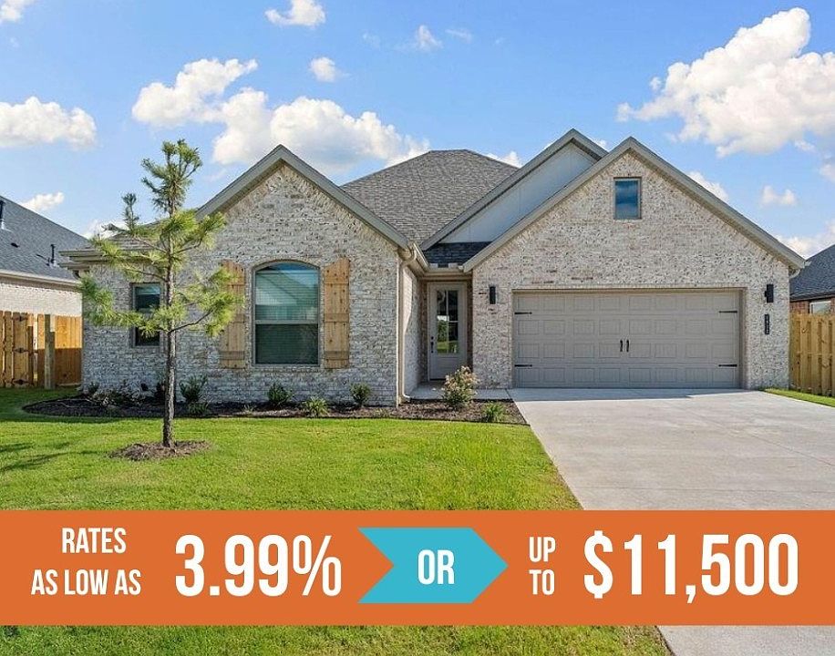 Pea Ridge welcomes you to its rapidly growing community. The Yorktown subdivision places you at the heart of it all, offering close proximity to schools, parks, and beautiful scenic views. The Mallard plan greets you with a split floor design, placing all secondary bedrooms at the front and side of the home, while the primary bedroom is nestled in the back for added privacy. LVP flooring runs throughout the main living areas and laundry room, adding a touch of elegance to the open-concept layout. The primary bedroom offers a sense of seclusion yet provides easy access to the kitchen and living room. This plan also features a standout covered back patio, an electric fireplace, 3CM granite countertops throughout, and a gas range.For a limited time rates starting at 4.99% OR $7,500 from builder & up to $4K from preferred lender. For access to see all the homes stop by the model home at 1602 Christman St. Open Monday, Tuesday,Thursday, and Friday from 10-4 and Sunday 1-4.