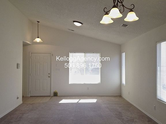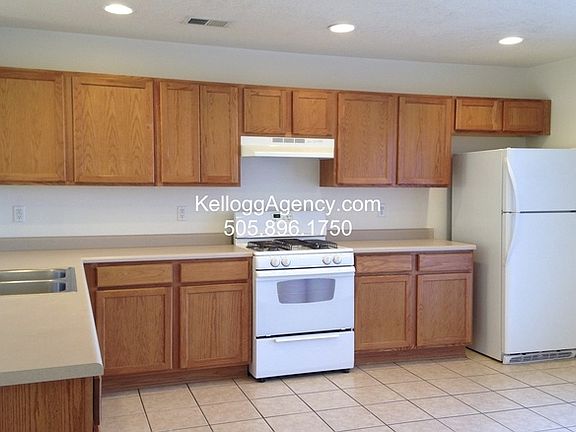 Great Home, 3 bedroom, 2 bath, in the Sierra Norte Subdivision. Southwest landscape front, fenced and rocked backyard. Kitchen open to family room w/breakfast bar, refrigerator, gas stove, dishwasher, closet pantry and disposal. Master bed room w/ceiling fan, master bath w/double vanity, walk-in closet and shower/garden tub combo. Full hall bathroom opposite 2 spare bedrooms. Window blinds, ceiling fans, tile and carpet flooring. Washer H/U, electric or gas dryer H/U, alarm available at tenant expense, 2 car garage w/remotes, refrigerated A/C.DIRECTIONS: Southern & Unser N on Unser W on Pine L on Santa Clara L on Chicoma R on Sierra Norte Loop 2nd R on Gallinas Rental Terms: Rent: $1,095, Application Fee: $40, Security Deposit: $1,095, Available Now This property allows self guided viewing without an appointment. Contact for details.