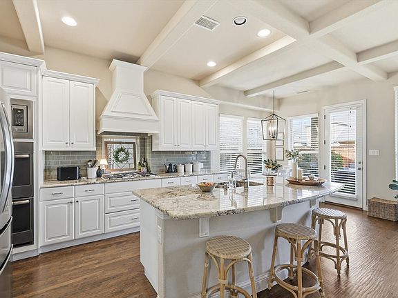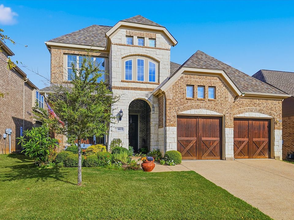 This elegant property has been elevated even further with thoughtful enhancements, including designer lighting in the kitchen, family room, dining room, entryway, and upstairs bathrooms, upgraded with professional installation, a stylish new fireplace insert, and fresh landscaping in both the front and back that truly transforms the curb appeal. Inside, the home shines with rich wood floors throughout the lower level and impressive coffered ceilings that add architectural charm to the living room. The freshly updated, neutral palette makes every room feel warm, bright, and move-in ready. Gather around the cozy fireplace in the open living area that flows seamlessly into a chef-inspired kitchen featuring upgraded countertops, custom backsplash, double ovens, and a 5-burner gas cooktop — perfect for cooking or hosting with ease. A dedicated executive office provides a quiet workspace, while the upstairs game room steals the show with its vaulted ceiling and wood beam accents. Just steps away, the media room creates the ultimate spot for movie nights, sports, or gaming marathons. The spacious primary suite offers a serene escape with upgraded tile, dual sinks, and beautifully updated countertops. Outside, the oversized pool-sized backyard and covered patio give you endless possibilities — grill out, host gatherings, or let the kids create their own outdoor adventures. With over $13,000 in recent improvements plus high-end builder upgrades throughout, this home delivers style, comfort, and the kind of lifestyle buyers fall in love with.