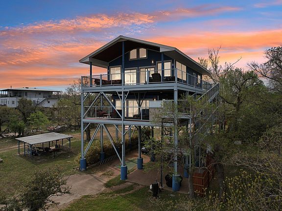 Unrestricted Deep-Waterfront Estate | 1.7+ Acres | 330’ Shoreline A rare "unicorn" opportunity on Lake Travis! This unrestricted premier deep-waterfront property spans over 1.7 acres across two legal lots, offering total freedom for development, investment, or a private compound. With no HOA or restrictive covenants, the possibilities are endless: build a second estate, expand the current home, or maximize its proven short-term rental potential with zero usage barriers. The exceptional 2-bed, 2.5-bath home offers a clean, modern design and a chef’s kitchen fully upgraded with brand-new KitchenAid appliances. The layout includes a dedicated home gym, modern bathrooms, and a versatile flex space that adds incredible functionality to the 1,920 sq ft floor plan. The gently sloping, tree-lined lot leads to two private, solar-powered docks: a massive party dock designed for premier entertaining and a covered boat dock with coveted year-round deep water access. Both docks feature eco-friendly solar power for lifts and lighting. Whether you are looking for a secluded primary sanctuary or a high-yield investment property with room to grow, this is one of the most versatile lakefront offerings available.