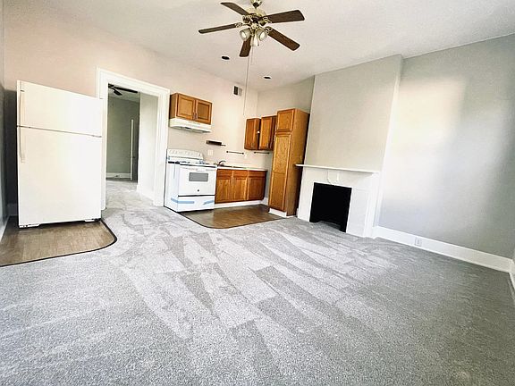 This 2nd-floor unit was refreshed in 2023 and features soaring ceilings, two decorative fireplaces, and brand-new appliances including a stove and refrigerator.