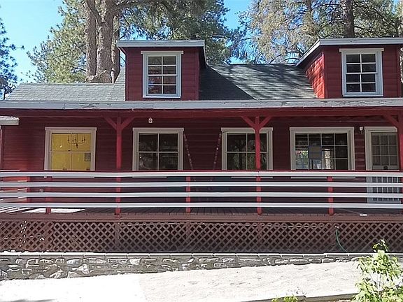 Wrightwood charmer on a corner lot!! Featuring 2 bedrooms, 1 full bathroom and a 2 car garage with the most adorable front porch you could ask for! Large concrete driveway, fenced rear yard and curb appeal galore! Location is ideal, perfectly situated between frequently plowed County roads in the winter and close but not to close to State highway 2 and Lone Pine Cyn Rd for easy commuting options. Centrally located and an easy 10 minute walk to the heart of the Village with shops and restaurants and Summer festivities. Feel the relaxing vibes with your wood burning fireplace that opens to the kitchen and ding area, and a large bedroom on the main floor that easily fits the Cali King. Full bathroom on the main level as well, with a slider off the hall to your relaxing rear deck nestled amongst the pines. Upstairs, a large loft bedroom with peek-a-boo dormer windows can easily sleep 4, perfect for the grand kids. Looking for a full or part time rental option to earn some income vs. mortgage payment? This is the PERFECT HOME for a weekend getaway, with plenty of parking, basketball hoop for the kiddos or the young at heart! Come see one of the most adorable homes Wrightwood has to offer!