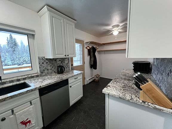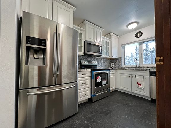 This spacious 3-bedroom, 2-bath home offers comfort, convenience, and a touch of Alaska charm. The main level is fully move-in ready, featuring a beautifully remodeled kitchen, furnished living spaces, and a bright sunroom with sweeping views of the mountains. A brand-new oven and like-new appliances add modern convenience.