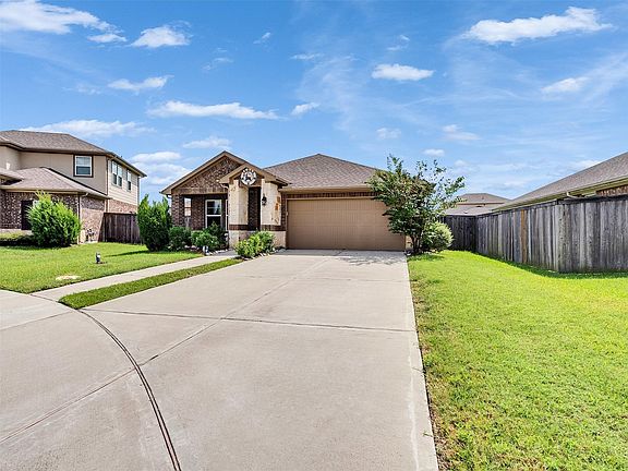 Welcome to your dream home—a single-story retreat nestled in a cul-de-sac in the desirable community. This beautifully crafted 3/2 residence, featuring a versatile study/office, offering the perfect blend of cozy and spacious living. Step inside to an open-concept layout with natural light, laminate flooring and a neutral palette ready for your personal flair. Beautiful kitchen, equipped with granite countertops, stainless steel appliances, and a corner pantry for storage, flowing into the inviting living area perfect for family gatherings or quiet evenings. Primary suite featuring dual sinks, a soaking tub and a walk-in shower. Additional bedrooms offer flexibility for family and guests, while the dedicated study provides an ideal work or creative space. The extra-long driveway accommodates plenty of parking. With top-rated schools, shopping at Town Center, and quick commutes to Houston or NASA, this home is a foundation for your next chapter.