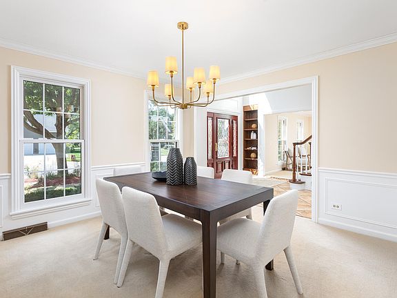 Finished basementCenter islandLuxurious primary suiteOversized bay windowsStriking wood-beamed ceilingOpen inviting floor planSerene backyard views