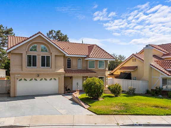 In a quiet cul-de-sac neighborhood in Palmdale is a 2,149-sqft home! This two-story home was remodeled 2 years ago to include a new AC unit, windows & bathrooms. A double door entrance opens into soaring ceilings & large bay windows that enhances the airy feel of a bright living room. Tile floors are installed throughout the formal & causal dining rooms, the family room complete with a brick fireplace & the remodeled kitchen complete with granite countertops, crafted cabinetry with under cabinet lighting, & stainless-steel appliances. Plush carpet floors line the entire second floor housing generously sized bedrooms are accentuated by high slopped ceilings & include built-in closet space while the primary bedroom accessible by a double door entrance offering an attached bathroom with a dual sink vanity. An entertainers dream backyard provides plenty of open and covered patio space that framed the glittering remodeled pool to create an ideal venue for all types of fun filled events!