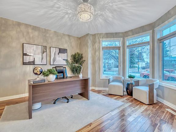 *OPEN HOUSE SATURDAY 22 from 1:00-3:00PM* PRICE IMPROVEMENT! Welcome to this stunning custom-built home, nestled in the highly desirable and mature community of Capitol Hill. This Modern French Country design blends elegance with timeless finishes, offering the perfect mix of style and comfort. With a sunny SOUTH backyard, this home is bathed in natural light to enjoy throughout the day. Inside, you’ll find exotic HARDWOOD flooring, premium Alaska white granite countertops, rich custom cabinetry, tiled backsplash, and modern fit and fixtures all thoughtfully designed. The home is also wired for sound with built in speakers for your entertainment. The floor plan is both functional and inviting, featuring a warm and welcoming foyer, MAIN FLOOR DEN with double doors for privacy, and an OPEN CONCEPT kitchen, dining, and living room centered around a cozy GAS FIREPLACE and lots of windows. The kitchen has a vast amount of rich wood cabinetry, a one of a kind island with corbel decorative ends, convenient pantry, GAS STOVE —ideal for gatherings and everyday living. Upstairs, a bright loft with SKYLIGHT welcomes you to 3 generous bedrooms. The primary is truly a retreat, large enough for a sitting area, and complete with a spa-inspired ensuite featuring dual vanities, make up desk with granite counters, a marble backsplash, HEATED TILE FLOORS, a soaker tub, a tiled shower, and a walk-in closet. Brand NEW CARPET was just installed upstairs. The FULLY FINISHED lower level offers even more space with a huge family room, WET BAR, fourth bedroom currently used as a home gym, full bathroom, and in-floor heat rough-in for added comfort. Outside, the property has mature trees, large Southern backyard space to enjoy with a double detached garage completing the package. Neighbors on either side have already been developed to semi-detached so likely no worries about pesky construction and or re-development. This home combines modern design, luxury finishes, and a prime location—just minutes to many trendy locales, schools, parks, shopping, transit and easy access to downtown. A true gem in Capitol Hill!