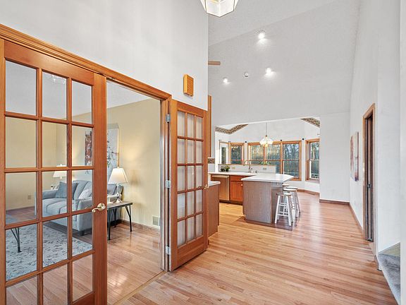 Located in a desirable cul-de-sac, this home offers great curb appeal and a private .47-acre lot bordering a walking path. The spacious layout features vaulted ceilings, a kitchen with ample cabinetry, stainless steel appliances, and a dining area surrounded by windows that leads to the deck. The family room includes a fireplace and double doors to the backyard. The main floor also has a laundry room and a flexible 4th room. Upstairs offers 3 bedrooms. The clean unfinished basement provides potential for more living space. You will not want to miss this one! Easy to show. Quick close possible.