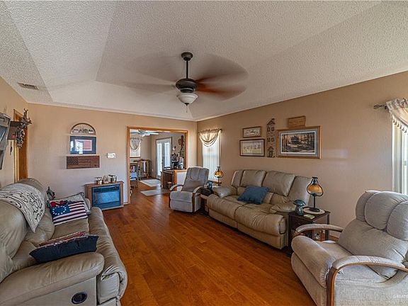 Wonderful 2-bedroom/2-bath brick home located inside of the 55+ community of Enchanted Valley Ranch in Mission. This 1320.0 sq. ft. home is ready to move in, it offers spacious rooms, very clean and well taken care of. The home has a front covered patio, ADA accessible, spacious dining room, welcoming living room, large master suite with shower (wheelchair accessible), cook-friendly kitchen with refrigerator, granite countertops, breakfast bar for serving buffets, appliances included, shingle roof, and 1-car garage plus attached storage/workshop in the back. HIS and HERS SHEDS AIR CONDITIONED--perfect for workshops or hobby rooms. Rock yard for easy maintenance, this is a must see..Owner says bring offers!!